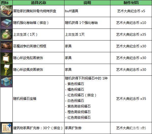 2)完成相关任务可获得艺术大典纪念币(8月2日维护后消失),使用纪念币可兑换丰富道具;