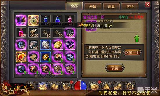 复活戒指:有几率在死亡的时候直接复活并恢复一定的血和魔