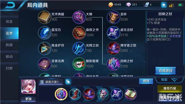 六神装:回响之杖、冷静之靴、博学者之怒、痛苦面具、虚无法杖、贤者之书