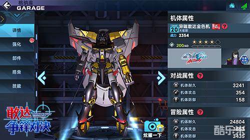 「异端高达金色机天蜜娜」初始就为3星,机体定位「近」。仅看三围数据均不是特别出众,尤其是防御力在4星时候依然直到了160左右,可见此机体是以特殊的武器技能来取胜的。该机的主射为普通的光束步枪;技能1有两招,麻痹弹和钩锁;技能2则是隐形与突进;格斗是近战机的配置,有横格有冲格,但是没有奥金之镜特殊能力是个遗憾。必杀技为捕捉发动的乱舞型,总的来说技能还是相当丰富的。