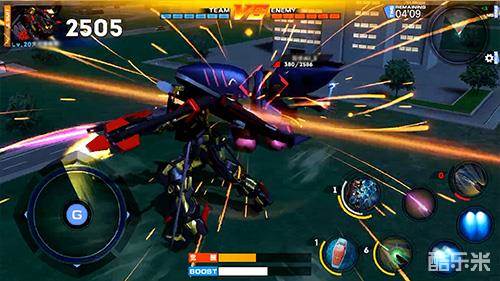 而最具有特色的,就是搭配技能2的格斗组合技。该招数是在数段的格斗打击后,用背部的灾祸生太刀大钳子抓住对方,吸取机体的喷射槽,最多可吸取三下。之后自己就会进入数秒的喷射槽加成的状态,对手的喷射槽则相反受到了减少,这时候对飞起来就是我们的胜利啦~吸取本身有一定硬直时间,在2v2时候要小心防护。