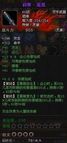 斗战神灵猴60级紫武碎骨流星属性介绍: