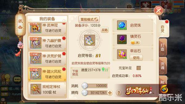 启灵虽然能够带来高额的附加属性,但是与其它强化玩法相比存在一处致命劣势——有成功率的设定,换言之投入到启灵中的资金并不能百分百带来回报!一旦要确保成功的话,势必会消耗过量资金,导致收益低于其它强化玩法,因此大家不要执着于高等级启灵(除非资金充足,不然启灵到20即可)。