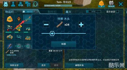 双击右边篝火栏里的烤肉,选好数量再点击【转移】按钮即可将烤肉拿回物品栏中。