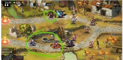 当大BOSS走到1处前面时,3弓箭手放技能冻住boss,然后使用其他妹子放技能攻击boss