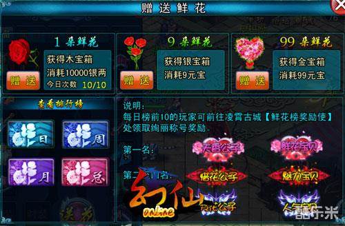 我们上下班坐公交的时间、睡前的无聊时间哪怕是上班偷懒的时间,都可以拿出手机来,去和自己心仪的人交朋友。那么当你喜欢上了对方却不敢直说怎么办?别担心,《幻仙OL》为您准备了“鲜花系统”,从一朵的一生一世,到9999朵的海誓山盟,您都可以送给对方哦,而且还能让全世界见证您的爱情呢!