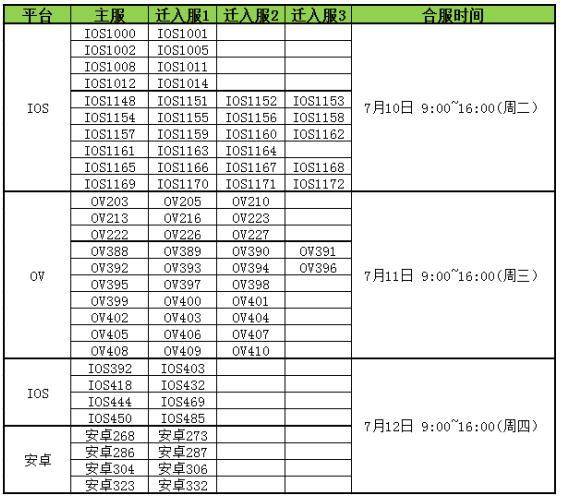 合服后参与合服的服务器全服补偿:(所有角色等级≥50级且在合服日之前最近15日内有过登陆的玩家)200元宝+大银锭*20+阅历包*50+大补丸*500+养心丹*100+鲜花礼盒*5+阵营转换令*1+结婚卡*1(其他补偿请在合服细则查看)