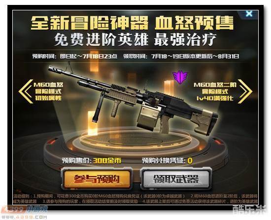 昨天生死狙击游戏内活动面板上出现了M60血怒的预售活动,很多同学就像知道这个M60血怒是什么样的武器,值不值得买,菜菜去打听了一圈,给大家透露一点消息~
