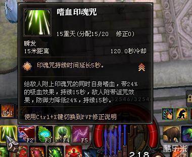 那么上面说到果子集三大DEBUFF于一身,对于团队输出的提升是非常大的。果子的溃烂很多,基本能全程保持,组队时候锁链诅咒不要点,有牛的话基本是被牛的诅咒全程占据。单刷团本的话我推荐大家把印魂咒能点满的尽量点满,技能买满的话是够的,点不够就只点1重天