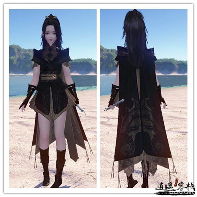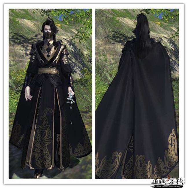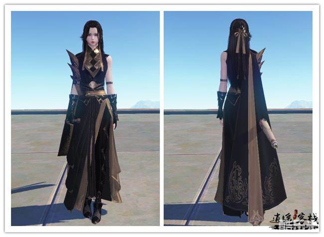 这套时装主要的样式,成男体型和少女体型的是一样的,都是双肩的铠甲,墨色的长发一半由金色的配饰束起,不过这次的配饰则表现了男子的一面,有点像道长的发饰,而墨色和金色是大多数人心中男子的本色。