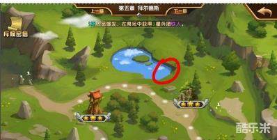 第五章隐藏宝箱位于地图中间湖泊的右下角,很多玩家说不好点,多试几次就可以点出来了。