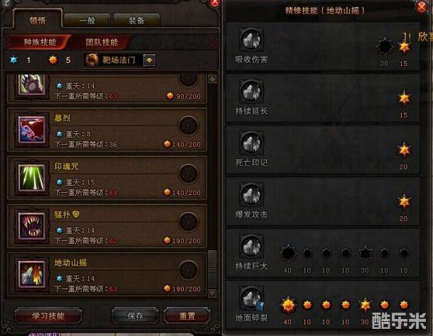 最后就是地动山摇了,地动这个技能最下面一排的地面碎裂伤害个人感觉很可观,不管哪一次测试,这个地上的火焰都是伤害最高的,也不多说了,这样点我感觉很完美了,最起码我想要的都有了,