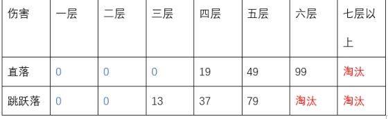 六层高度的坠落伤害为99