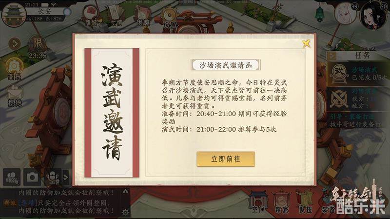 为了能在演武中一举夺魁,战斗正式开始前,玩家可利用备战时间商讨战术,布置队伍阵容。在这里,凡是勇于以剑会友的少侠,均可获得宝箱之赏;名列前茅者,更可凭借自身实力,对排行榜发起冲击,赢得万众景仰!