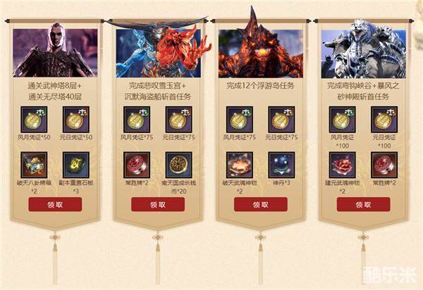 只要在活动期间完成指定的副本挑战任务,就可以在活动页面上直接领取到相应的礼包奖励。