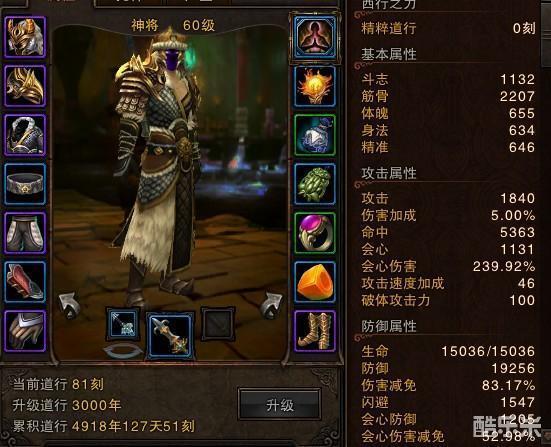 穿着上来说玩到60,做过套装的都知道,神将的穿着45套跟55套都有两套,左司命和大师徒,一般都配搭3+3,左司命前三属性跟大司徒前三属性,而这也会有所讲究,左司命制作头肩鞋,而大司徒就是上衣裤子手。也有2+2-2之说,就是45+55套组妖伤,我没搞,所以往下不做介绍。