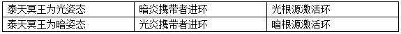 第二,进环阶段可以消除泰天冥王的光/暗气息。同样以上面图为例,如果A,B身上本身没有任何光暗BUFF,则C进入后,A,B,C均被染上光炎。如果A身上原来携带有暗炎BUFF,当C进入后,他身上的暗炎会被强制洗成光炎,那么当泰天冥王此时是光姿态时,就会吸收这个被洗掉的暗炎,并且削减光气息条大约一格半。下面为光/姿态下,通过幻炎环来削减气息条的规则: