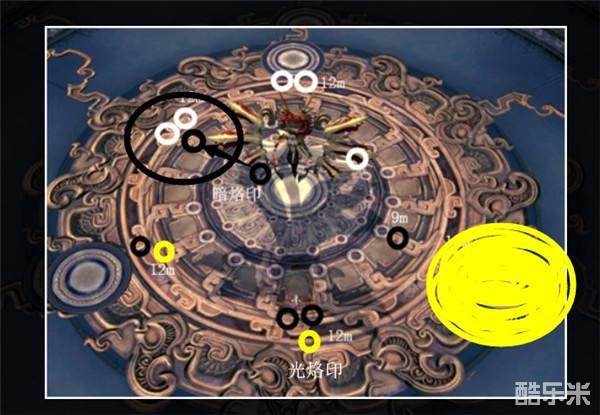第三,洗光/暗操作有两种方式:方式一,第一轮拿到暗炎的人,第二轮进即将被染成光的环里洗;方式二,在一轮内暗根源先进拿到暗炎,再进入即将被染成光的环,光根源再进。推荐使用第二种方式,比较灵活,一般需要灵剑枪手气功刺客等这种有两段位移技的职业来完成。