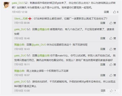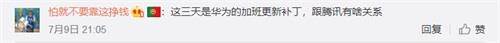 在腾讯华为双方解决此次问题之后,又有网友表示问题出现后,只有华为单方面发布修复补丁,腾讯方面仅发布了公告,因而断言此事是腾讯蓄意而为。但手游的技术适配本身,并不是发布新版本、或者是手机厂商发布补丁那样显性的技术调整,刺激战场方面在本次修复中作出的努力,被完全忽视了。