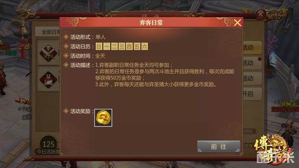 要是没时间参加“传奇宝藏”活动赚取金币的话,那么副职推荐选择奕客,每日通过副职任务还能有100W金币进账(只斗地主不猜大小)。