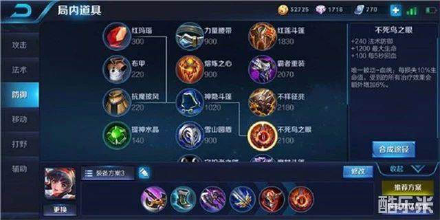 不死鸟之眼,娜可露露的二技能配合上不死鸟之眼,可以使得二技能在命中敌人时恢复更多的血量,且前中期娜可露露主要装备都是加强输出,在后期生存能力不足,做出不死鸟之眼既可以增加魔抗,还增加了娜可露露的最大生命。