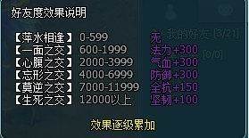 好友亲密度分5个等级:一面之交、心腹之交、忘形之交、莫逆之交、生死之交。不同的等级将带来不同的属性加成。