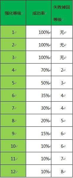 强化等级总共有12级,分别从+1~+12,越高等级的装备强化越难,同时高等级也会获得一些额外的强化属性奖励。下图为强化的成功率: