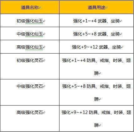 强化还需要消耗对应的强化道具,分别为强化仙玉、强化灵石,对应物品如下图: