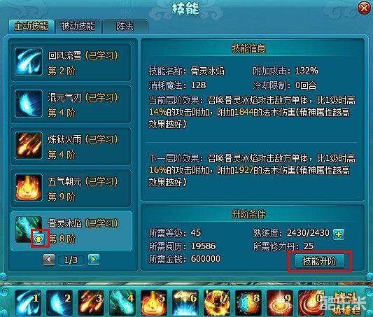 技能每次升阶都有特定熟练度要求,如果当前该级别熟练度达不到升级需求,则该技能无法升阶。