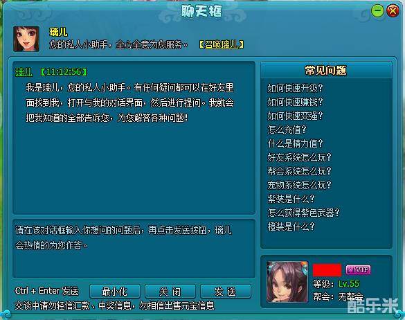 聊天窗右侧,是玩家常见的问题,您可以直接点击问题,璃儿会为您做解答。