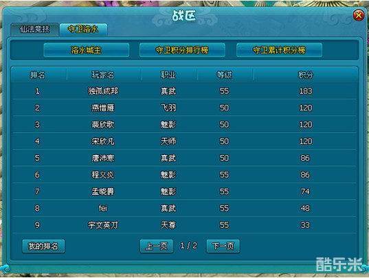 洛水积分排行第一名的玩家会获得洛水城主的称号,获得称号的玩家在下一次活动开始之前都会有3%的防御加成。