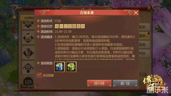 在首领来袭活动中,由于玩家所在行会总体伤害进入排名的前十就可以获得额外的奖励,所以进行首领来袭这个活动玩法时最好让更多的行会玩家一起加入到活动中来,用人数的优势来获得总输出量的优势,在游戏中战力鼓舞可以提升行会成员的战力,虽然战力鼓舞需要消耗一定量的元宝,但是只要一个人消耗,行会成员都可以享受战力增益,所以只要行会中有一个土豪玩家给大家提供增益效果就可以了,不过由于战力鼓舞提升的层数越多,消耗的元宝也就越多,玩家也不用一味的使用战力鼓舞。