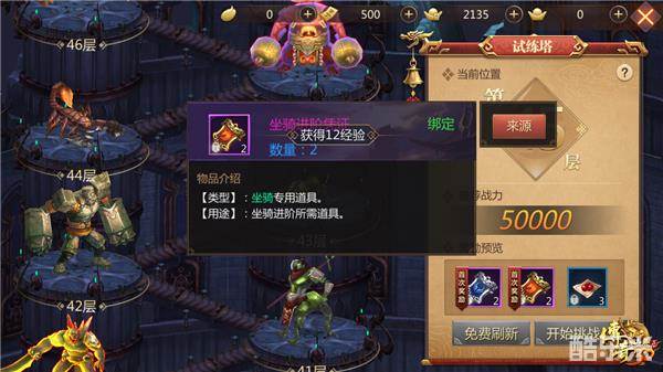 无论是参与什么样日常活动,最终的目标都是冲着收益去的。而在试练塔中大伙就可以获取多项收益,其中对大伙帮助最大的当属兽神丹、坐骑进阶凭证、神翼进阶凭证、技能书以及符文。首先兽神丹是坐骑升星必须要消耗的道具,坐骑的星级越高所提供的战力加成就越大。不过坐骑升星并不是一朝一夕就可以完成的,需要消耗大量的兽神丹,大伙一定要早作准备。除此之外当坐骑星级提升到满星时就需要消耗坐骑进阶凭证来提升等阶,当坐骑达到一定等阶之时就会激活天赋,这对于大伙来说非常重要,可以大大提高大伙在战场中的存活率。