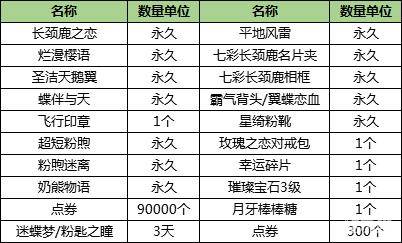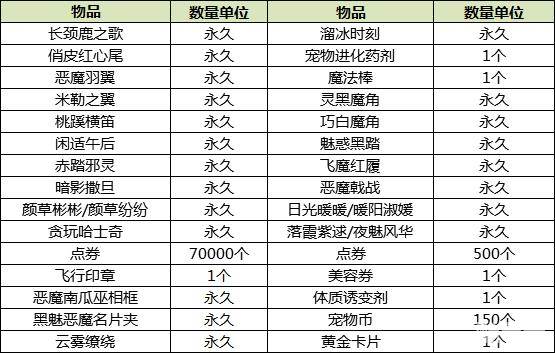 本期我们为大家准备了很多精美的礼品,其中包括全新坐骑长颈鹿之歌,萌趣固定座椅闲适午后,经典小恶魔翅膀俏皮红心尾、恶魔羽翼、新款翅膀米勒之翼,新款乐器桃蹊横笛,深受喜爱的特效鞋子溜冰时刻等其他热销道具,喜欢的玩家不要错过哦!