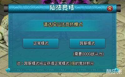 1.角色等级达到60级以上的玩家,每日参加仙法竞技可选择参加【普通模式】(本服)或【跨服模式】