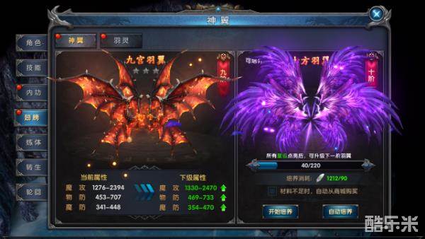 《九珑诀》的翅膀拥有着翅膀升级和翅膀技能两部分。当翅膀升级到3阶之后翅膀技能功能开启。