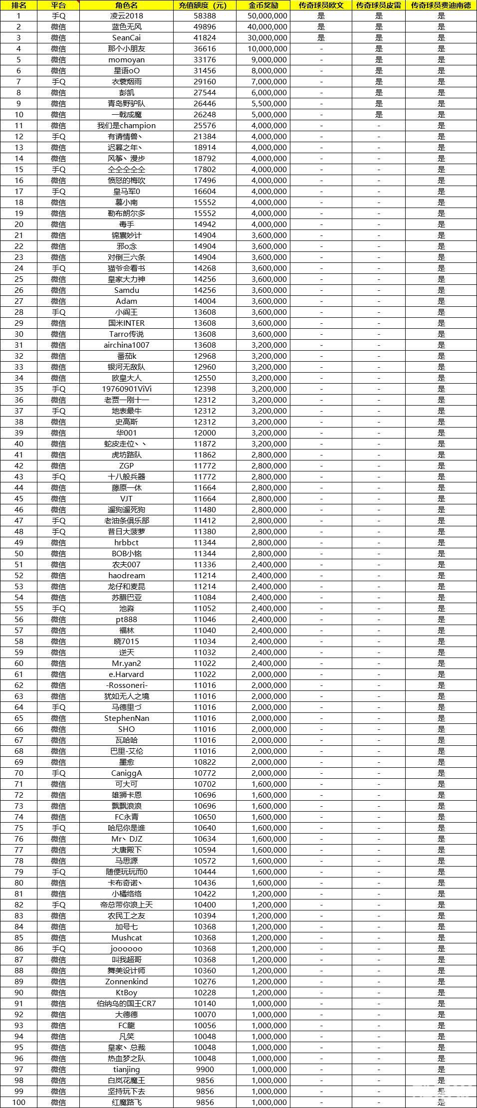 FIFA Online3 恭喜!充值排行活动前100排名赢得传奇球员!