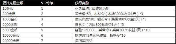 活动内容:活动时间内,玩家累计充值达到相应金额要求,即可领取奖励,同时还可获得相应的VIP等级。