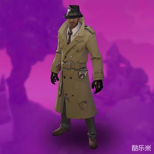 ·设计:Sleuth男装配有经典的侦探装,配有厚厚的棕色夹克,黑色浅顶软呢帽和一副黑色手套。该装备还有一个从口袋里伸出来的通缉人员传单。这套服装配有一个名为Evidence Bag的后背装,看起来类似于后卫,名为Confidential Case。这张皮肤的灵感来自于许多黑色电影。