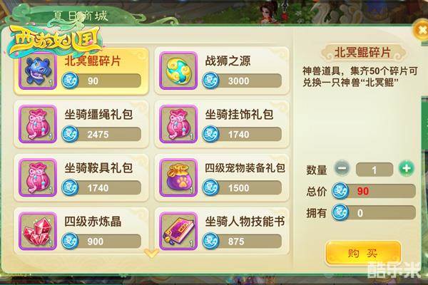 与其他神兽不同,北冥鲲的获取不需要消耗元宝或银两,玩家只需要参加暑期狂欢活动获得夏日积分,达到指定积分即可兑换北冥鲲碎片,即使不花钱也能拥有新神兽!