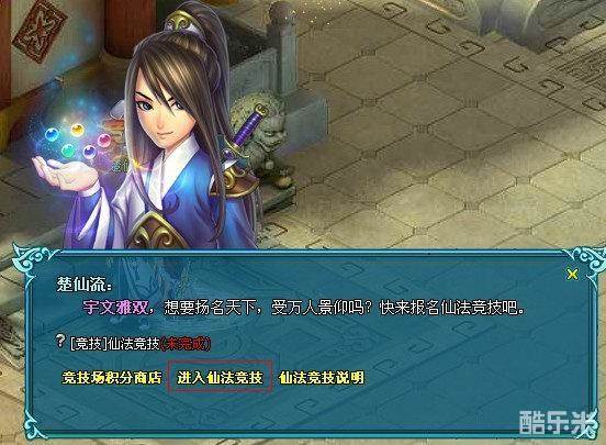 玩家入场:玩家报名后传送入竞技场准备区,比赛开始前不得PK,中途可找场内NPC竞技场管理员退出场景,视为退出报名,不可获得积分。进入正式场景后,系统将玩家分配到离火组,或玄水组。