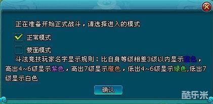 1.玩家进入竞技场可以选择模式:1.正常模式(按照玩家原来的形象进入,在准备区域玩家可以查看您的信息) 2.蒙面模式(穿戴蒙面服装,让其他玩家无法知悉您的信息)如下图:
