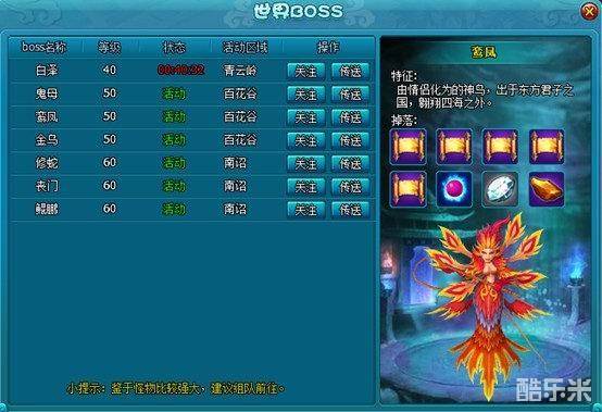 当世界BOSS处于【活动】状态时,可以在相应场景的随机位置寻找到它。