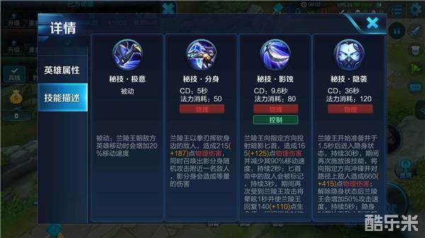 兰陵王附近出现敌人时,兰陵王会提高自身的移动速度,帮助他快速接近敌人。虽然兰陵王缺乏位移技能,但这个被动却让他丝毫不受限制,可以更好的接近并且击杀敌人,并且如果身处险境,兰陵王还可以巧妙的利用被动进行逃脱,无比灵活。