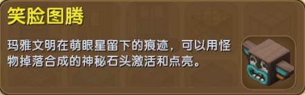 笑脸图腾如果没有搭配激活石或者信标石,其实没什么作用,而且笑脸图腾目前是不能拆除的,也就是说没有办法把笑脸图腾拆回家里用,而且也无法直接制作,有点可惜