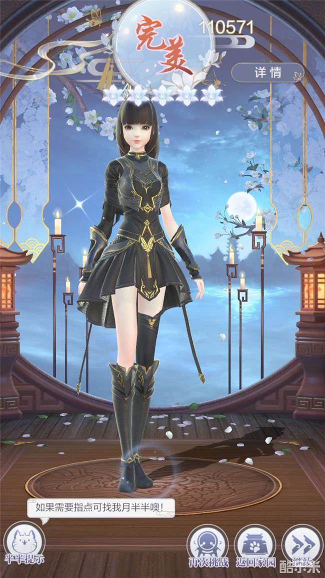 在该关卡中,我们获得的关键词是“英气”“保暖”以及“黑色”,在这样的条件下,首先想到的就是基础套装边塞,但边塞的关卡评分是不足以达到完美的,所以我们需要将边塞套装升级为守边城套装才行。穿戴全套的守边城套装即可轻松通关。