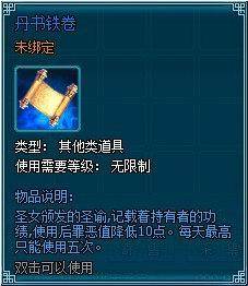 在商城购买物品【丹书铁卷】,使用后可以降低罪恶值,每天有使用次数限制。