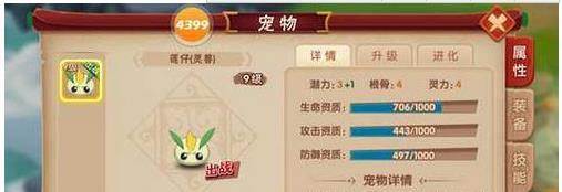 ①等级提升:通过消耗瑶草,来提升宠物等级。