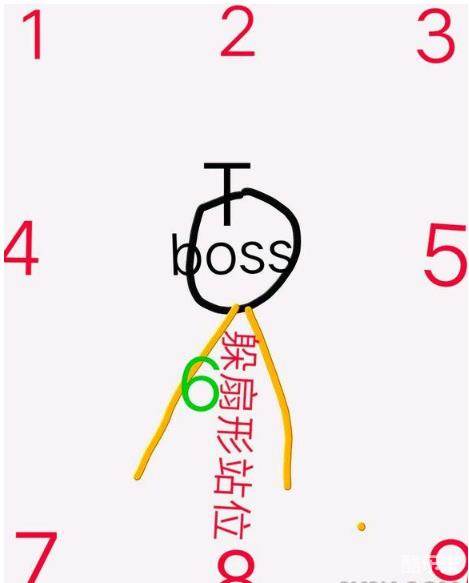 全团最远距离,boss拉在房间中间。其余人,均匀划分人与人之间距离,分散站位。