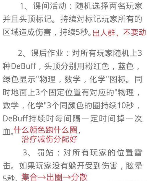 1.数理化作业:人群中间集合,什么颜色的debuff跑什么颜色的圈。